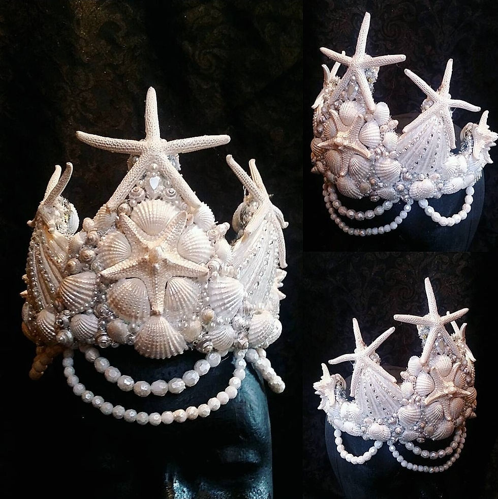 Mask made of Worbla thermoplastic, wire, fabric, sea shells, and beads